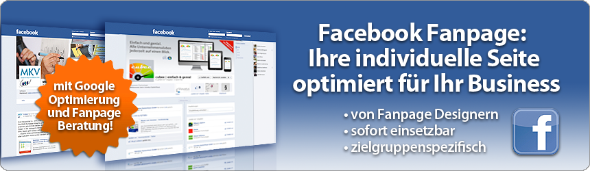 Wir erstellen Ihnen Ihre Facebook-Unternehmensseite als „Facebook-Komplett-Set“ – eine fix und fertige, zielgruppenspezifische und suchmaschinenoptimierte Facebook-Seite für Ihr Unternehmen (Ihre Organisation, Ihren Verein, Ihr Produkt oder ähnliches).